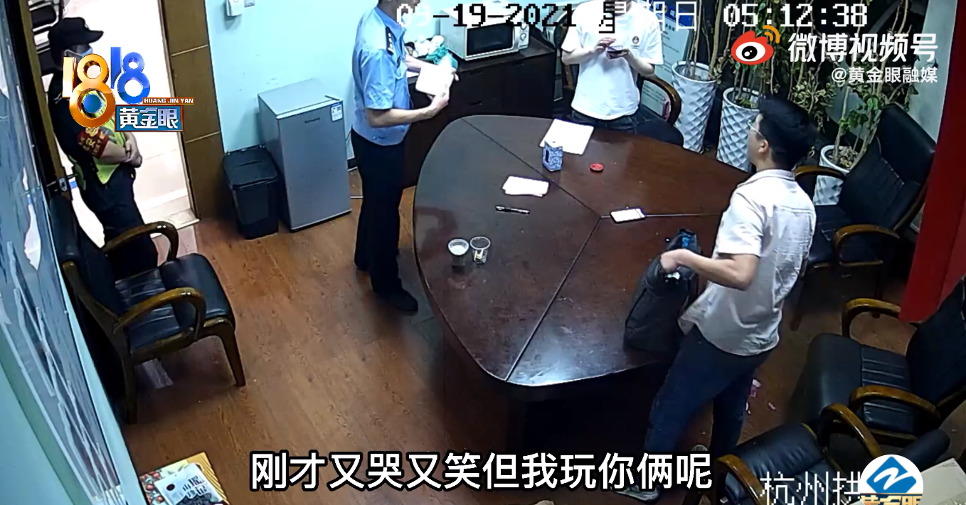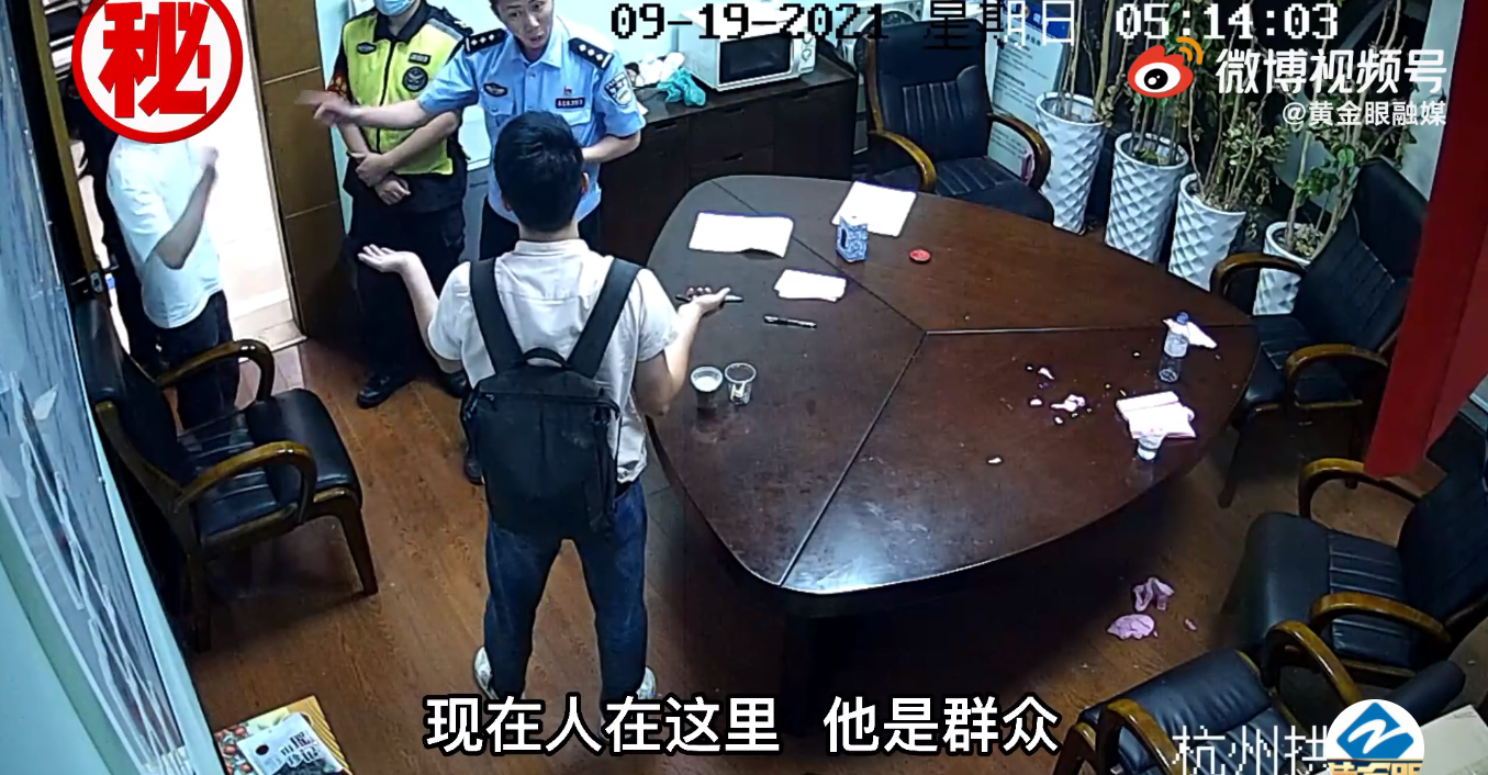 結果一旁一直沒出聲的前台小哥突然舉手出聲“我證明”,民警也表示“羣眾在這裏(作證)”,以回應打人男子出言不遜的嚴重性。