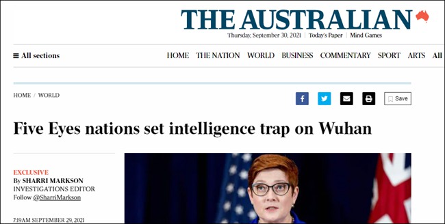 9月28日,《澳大利亞人報》披露了一場由美國“精心策劃”的詭計。今年初,時任國務卿蓬佩奧故意選了一條公開的線路同英、澳等“五眼聯盟”夥伴通話,打算公開所謂“武漢病毒研究所科學家在2019年11月感染新冠”這一“重磅消息”。