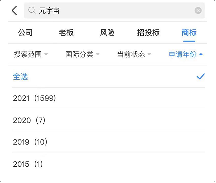 2021年,電影《失控玩家》中個人意志甦醒的遊戲NPC們再次點燃了元宇宙的概念。天眼查顯示,2021年申請“元宇宙”相關商標的公司有近1600家,這一數字在2020年僅為7。2021年,被稱為元宇宙元年。