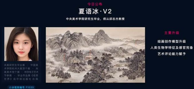 除了華智冰,小冰公司的另一個“高材生”是夏語冰。夏語冰是由小冰公司與中央美術學院合作的人工智能,目前已經完成第三代詩歌與繪畫創作模型。發佈會上,夏語冰通過新增的“中國畫”特性所創作的作品也被首次公開。