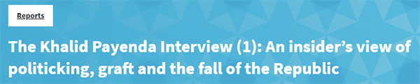 (觀察者網訊)9月27日,總部位於喀布爾的智庫“阿富汗分析師網”(AAN)發佈了一份對阿富汗前政府財政部長哈立德·佩恩達(Khalid Payenda)的採訪記錄。這位在政府倒台前就辭職跑路的前財長以自己親身經歷,詳細解釋了腐敗是如何促成加尼政府在短時間內快速崩潰的。