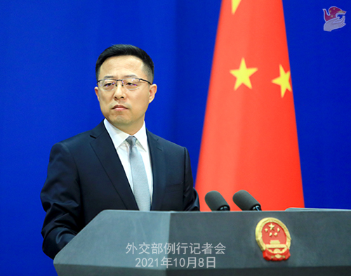 10月8日,外交部發言人趙立堅主持例行記者會。