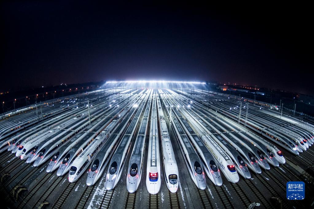 動車組停靠在武漢動車段的存車線上,準備進行檢修和保温作業(2018年2月1日攝)。新華社記者 肖藝九 攝