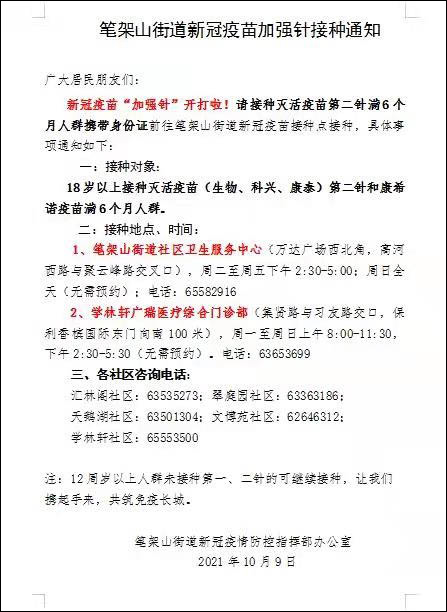 據安徽網10月9日消息,記者從合肥市蜀山區筆架山社區服務中心瞭解到,該中心從今天開始接種新冠疫苗“加強針”。“我們是昨天接到的上級通知,接種對象為18歲以上接種滅活疫苗(生物、科興、康泰)第二針和康希諾疫苗滿六個月人羣可以接種。”合肥市筆架山社區衞生服務中心相關負責人告訴記者,接種對象即日起可攜帶身份證前往接種點進行接種。