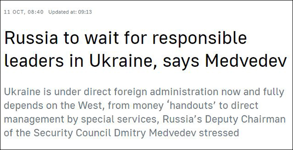 在這種情況下,梅德維傑夫認為,俄羅斯只能等待烏克蘭出現一個負責任的領導層。