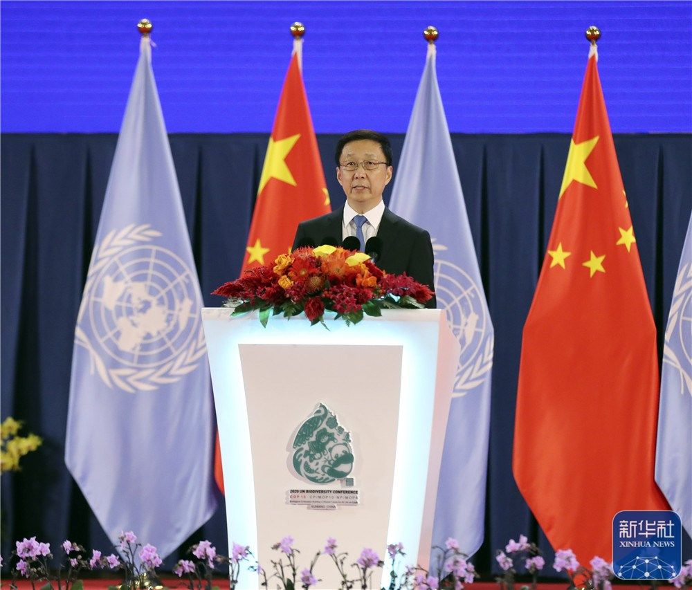 中共中央政治局常委、國務院副總理韓正11日在雲南昆明出席《生物多樣性公約》第十五次締約方大會開幕式並致辭。