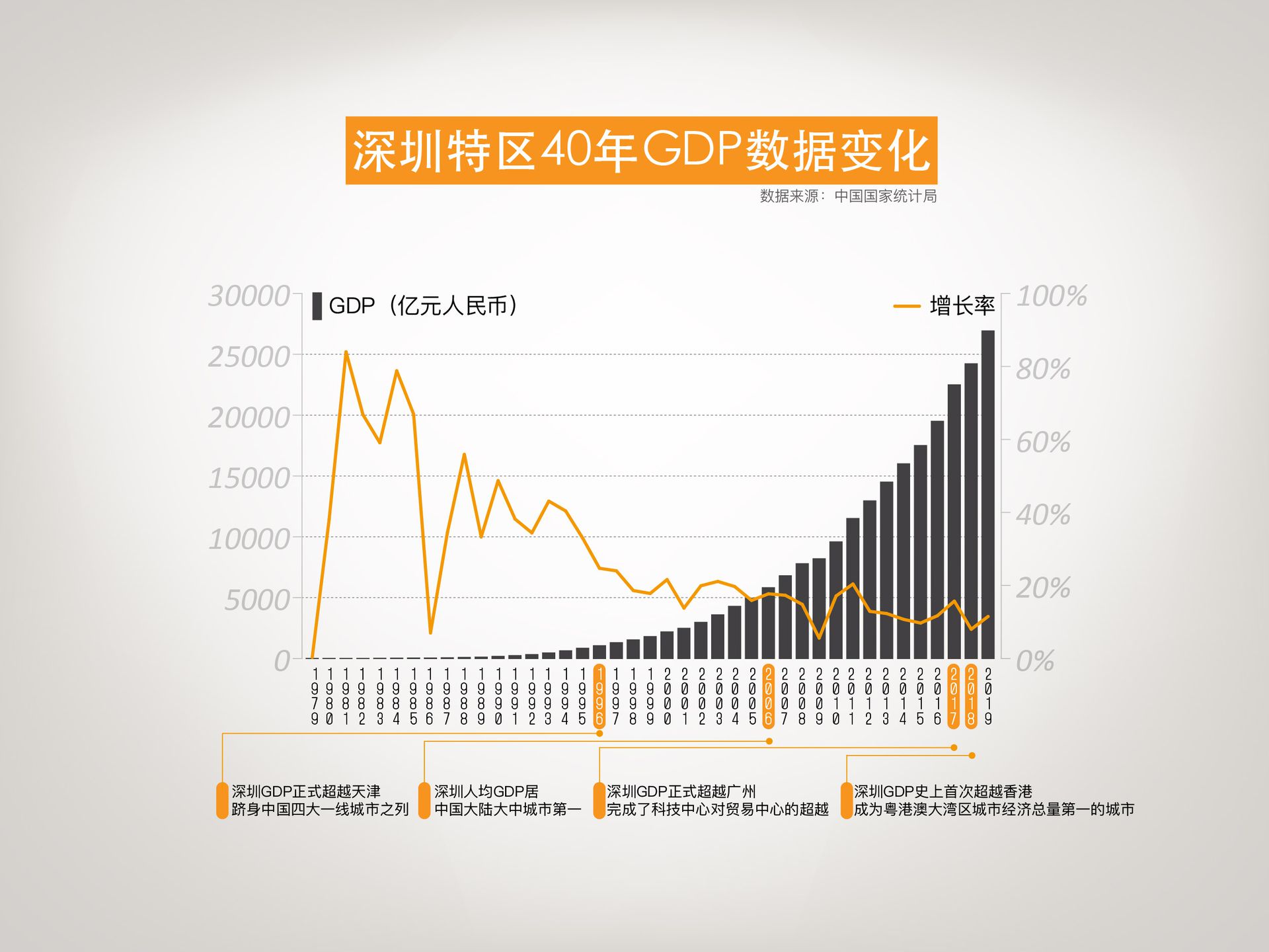 深圳特區40年GDP數據變化 圖自港媒