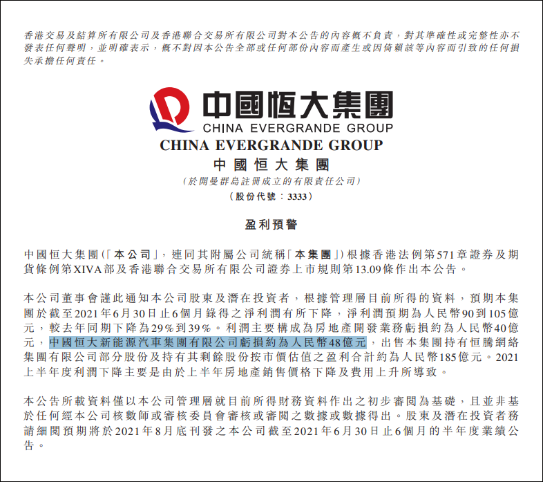 8 月 30 日,恒大汽車發佈中期業績報告。數據顯示,2021 年上半年恒大汽車實現營業收入為 69.23 億元,同比增長 53.43%,其中健康管理分部為 68.86 億元,新能源汽車分部為 0.37 億元;毛利潤為 2.47 億元,同比下滑 80.42%;淨虧損 48.22 億元,同比下滑 96.25%。