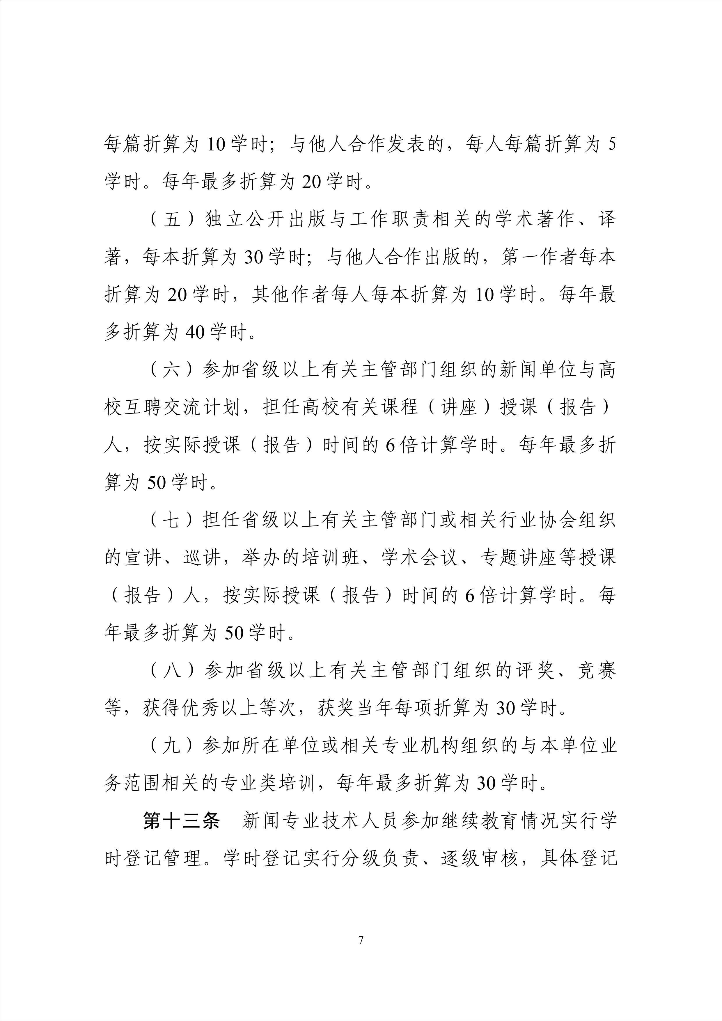 (六)參加省級以上有關主管部門組織的新聞單位與高校互聘交流計劃,擔任高校有關課程(講座)授課(報告)人,按實際授課(報告)時間的 6 倍計算學時。每年最多折算為 50 學時。