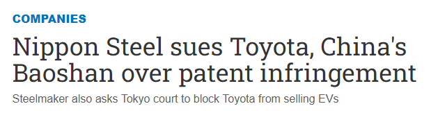 日經新聞對這一起訴也感到驚訝,因為豐田一直是日本製鐵的高級客户。