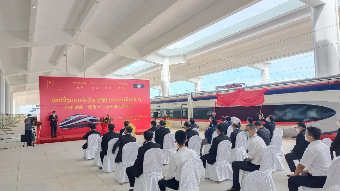 微信公眾號“中國鐵路”消息,10月16日11時(老撾時間10時),一列紅藍白三色塗裝、呈流線型的動車組運抵剛剛建成的中老鐵路萬象站,正式交付老中鐵路公司。該動車組被命名為“瀾滄號”,將於近期投入中老鐵路動態檢測。