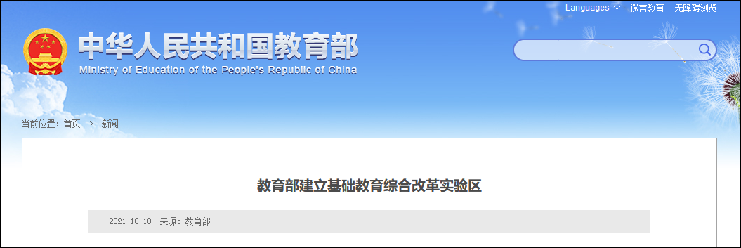 據教育部官網10月18日消息,近日,教育部辦公廳印發通知,部署在上海市、廣東省深圳市、四川省成都市、河北省廊坊市、山西省長治市、江蘇省常州市、浙江省金華市、安徽省銅陵市、福建省三明市、湖北省宜昌市、陝西省西安市高新區、山東省諸城市等12個省市區建立教育部基礎教育綜合改革實驗區。