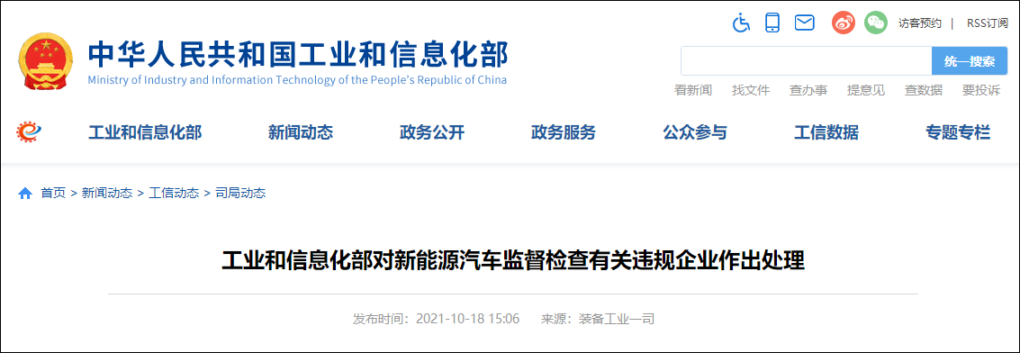 工信部網站10月18日消息,近日,為規範新能源汽車產業發展,提升生產一致性水平,保障產品質量安全,工業和信息化部裝備工業一司約談了2020年度新能源汽車監督檢查中存在違規問題的7家新能源汽車生產企業,下發責令整改通知書,要求有關企業切實履行主體責任,認真分析問題原因,嚴格按照準入管理要求,限期整改存在問題。