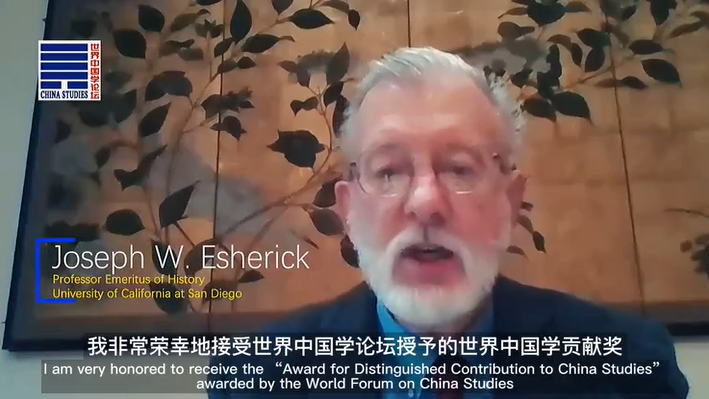 “我非常榮幸地接受世界中國學論壇頒發的‘世界中國學貢獻獎’獎項……如果説我對中國歷史研究有任何貢獻的話,要完全歸功於1979年後中美兩國恢復學術交流。”
