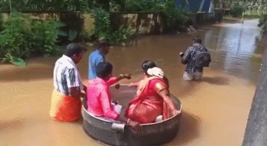 洪水中,印度夫婦乘大鍋“漂洋過海”去結婚