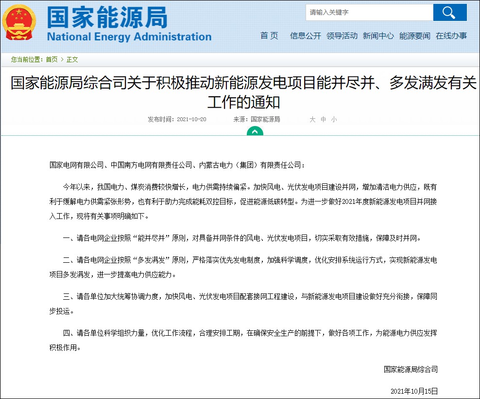 二、請各電網企業按照“多發滿發”原則,嚴格落實優先發電制度,加強科學調度,優化安排系統運行方式,實現新能源發電項目多發滿發,進一步提高電力供應能力。