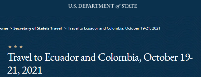 報道稱,美國國務院負責西半球事務的助理國務卿布萊恩·尼科爾斯(Brian Nichols)表示,布林肯此次訪問的部分目的是彰顯厄瓜多爾與哥倫比亞兩國所謂的“有活力的、包容的”民主制度。為此,布林肯還將在20日上午發表一場題為“民主與良好治理”的演講。