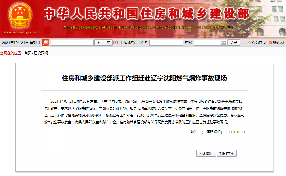 住房和城鄉建設部網站消息,事故發生後,住房和城鄉建設部部長王蒙徽立即作出部署,要求迅速瞭解事故情況,立即派員趕赴現場,指導幫助當地做好人員搜救、傷員救治等工作,查明事故原因並依法依規處理。進一步指導督促各地深刻汲取教訓,按照已有工作部署,紮實開展燃氣安全隱患專項檢查和整治,堅決消除安全隱患,有效遏制燃氣安全事故發生,確保人民羣眾生命財產安全。