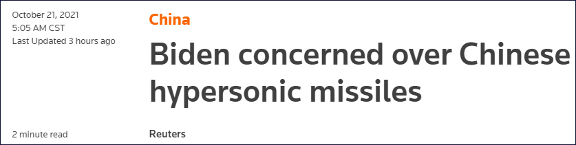 外媒繼續炒作中國“高超音速導彈”:拜登“擔憂”了