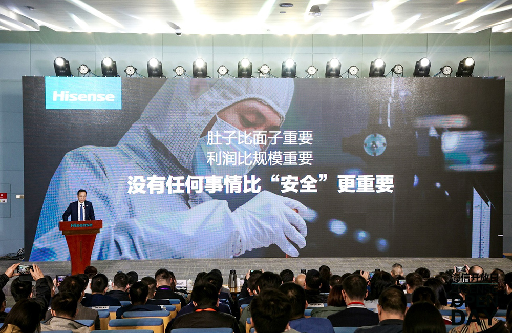 他表示,海信一直認為,肚子比面子重要;利潤比規模重要,沒有任何事情比“安全”更重要。
