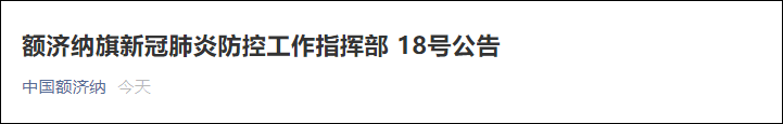 據內蒙古額濟納旗人民政府辦公室官方微信號“中國額濟納”10月21日消息,10月18日,我旗對閆某、姜某等一行8人在額濟納旗行程及密切接觸者和次密切接觸者等情況展開調查處置。10月19日,經流行病學調查和核酸檢測,並經自治區臨牀專家診斷,確認5例新冠肺炎確診病例,當日隨即啓動第一輪全員核酸檢測。10月21日,第一輪全員核酸檢測初步結果已出。經流行病學調查和核酸複檢,並經自治區臨牀專家診斷,確認新增8例新冠肺炎確診病例,已全部轉入定點醫院醫治。截至目前,我旗共有確診病例13例。額濟納旗新冠肺炎防控工作指揮部已對確診病例落實流行病學調查,對相關接觸人員開展排查追蹤和管理,對相關場所採取封閉管理及消殺等措施。