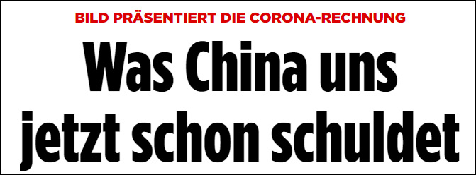 新冠疫情爆發後,《圖片報》不反思本國抗疫表現,反而開始琢磨“中國欠我們什麼”。