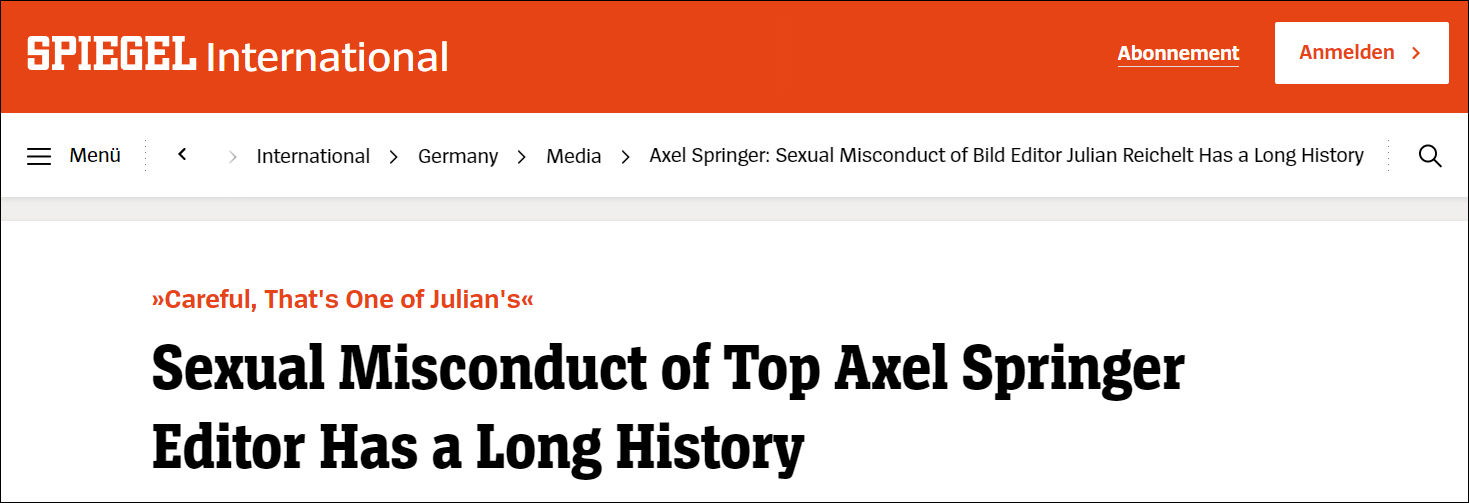 實際上,《法蘭克福評論報》等媒體此前曾對萊歇爾特進行過深入調查,但因阿克塞爾·斯普林格集團施壓,調查報道並未發表。