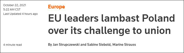 而此次於10月21日至22日舉行的歐盟峯會,其原定的議題主要包括能源危機、新冠肺炎疫情、移民問題等。不過在目前情況下,美國彭博社認為,波蘭和歐盟的衝突已為峯會“籠罩了一層陰影”。
