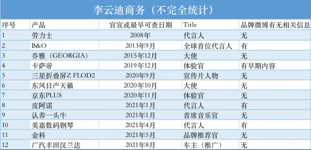 其中,皮阿諾、長城汽車與廣汽豐田均於今年才與李雲迪開展合作。皮阿諾(002853.SZ)、海倫鋼琴(300329.SZ)、卡薩帝所屬的海爾電器(01169.HK)均已在國內上市,認養一頭牛則於10月14日啓動A股上市消息。