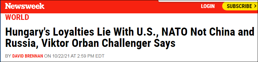 眼下,4度出任總理的歐爾班正面對來自反對派總理候選人馬基扎伊(Peter Marki-Zay)的挑戰,後者日前接受美媒採訪時,已迫不及待向西方國家“表忠心”,稱將永遠支持北約,還指責歐爾班與中俄打交道是“背叛西方聯盟”。