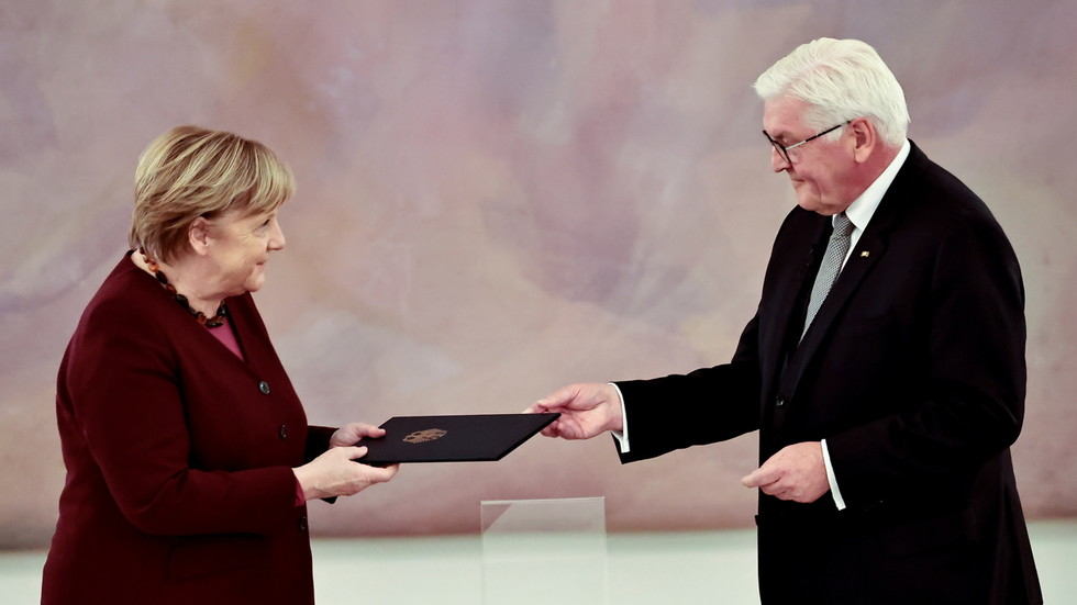 (觀察者網 訊)據今日俄羅斯電視台(RT)10月26日報道,德國總統施坦因邁爾26日正式解除了默克爾擔任總理的職務,並對這位即將離任的領導人表示了讚揚。