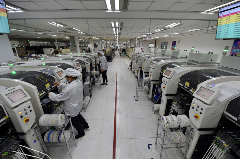 工人在位於安徽合肥的聯寶(合肥)電子科技有限公司生產車間內忙碌(2020年3月5日攝)。新華社記者 周牧 攝