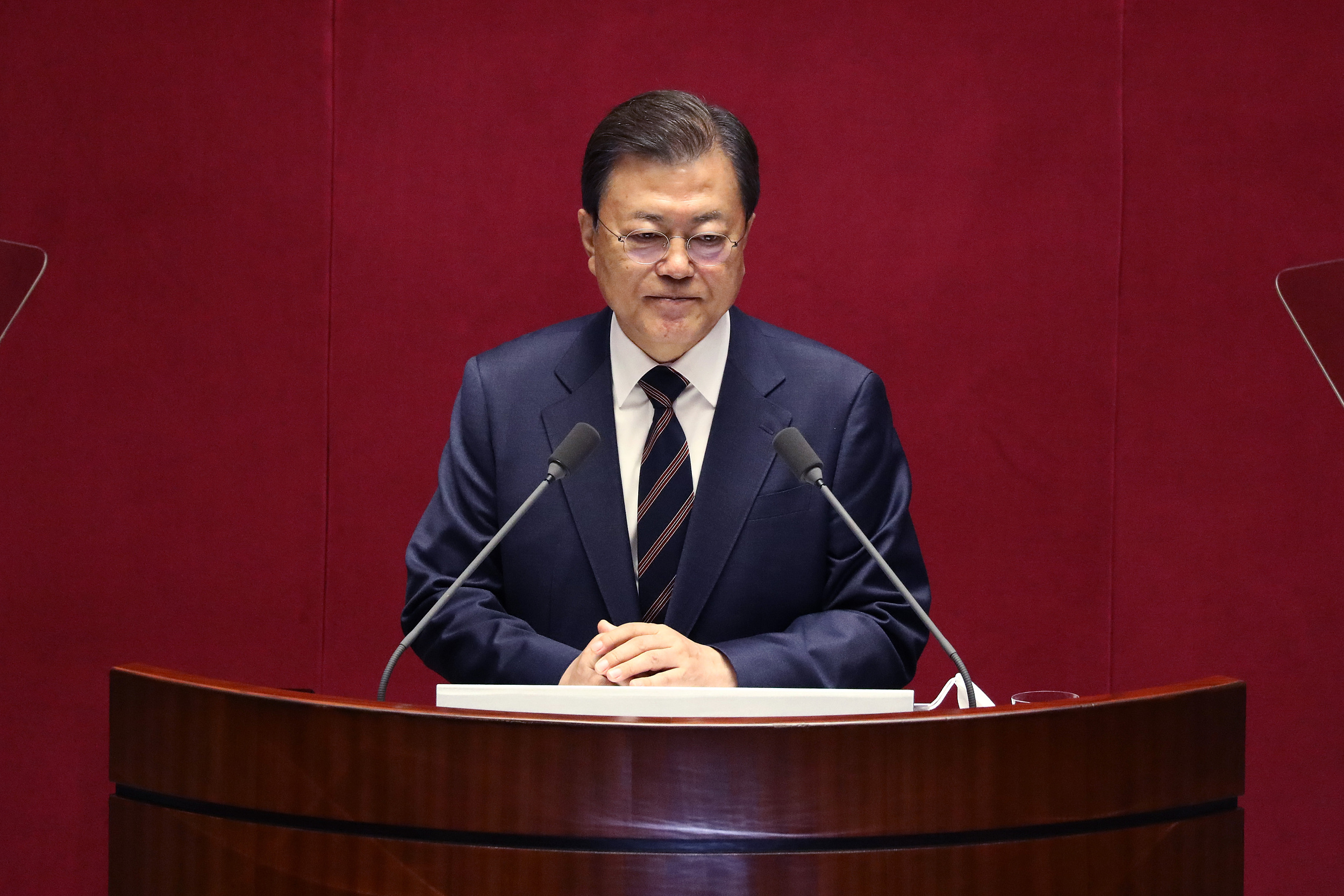 25日,文在寅在韓國會發表其任內最後一次施政演説,圖源:人民視覺