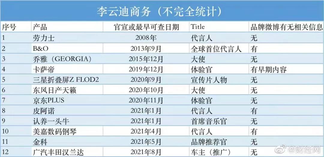 同時,李雲迪已代言或有商務合作的十餘家品牌接連宣佈與其解約,或澄清雙方已沒有合作關係。