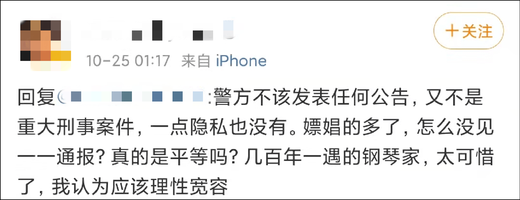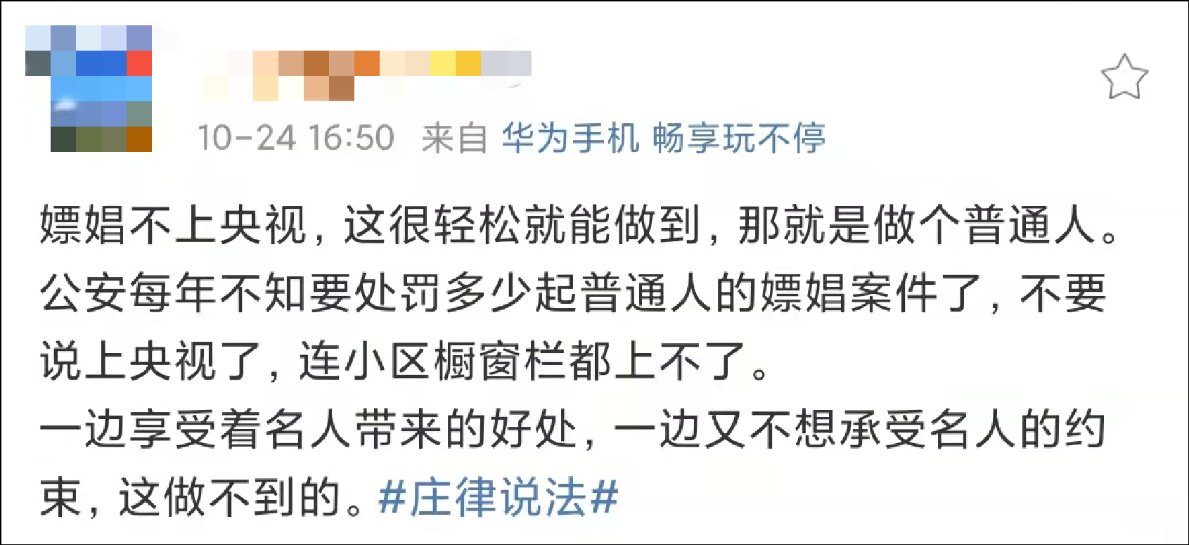 田寧寧指出,不僅僅是嫖娼,即便是公眾人物存在吸毒、賭博、逃税乃至其他違法犯罪行為,上述結論也不會有變化。