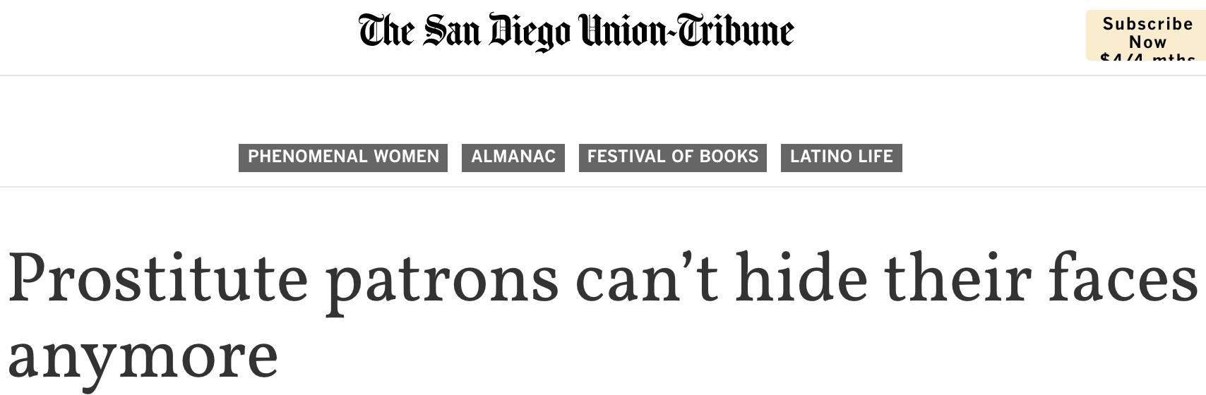 美國媒體2012年的報道:地方掃黃新招,嫖客一旦落網,名字和照片就會公佈在互聯網或報紙上,甚至家人也會收到政府的通知信函以示羞辱。