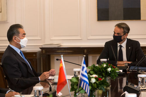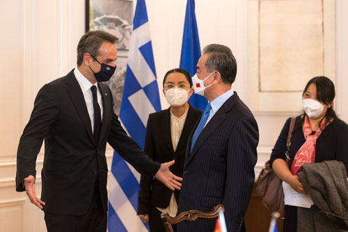 外交部網站消息,當地時間2021年10月27日,希臘總理米佐塔基斯在雅典會見到訪的國務委員兼外長王毅。