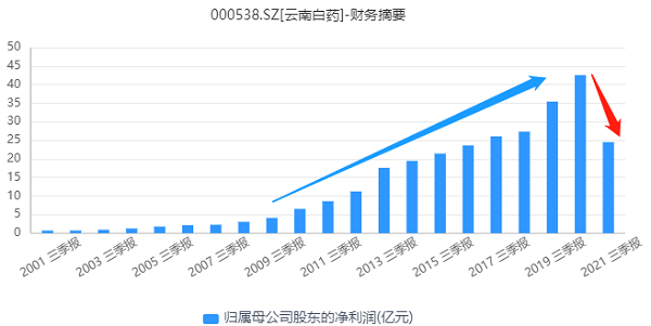 今年前三季度,雲南白藥實現營收283.63億元,同比增長18.52%;歸母淨利潤24.51億元同比下滑42.38%,扣非後淨利潤同樣下滑。這是雲南白藥自上市以來,首次出現前是三季度淨利潤同比下滑。