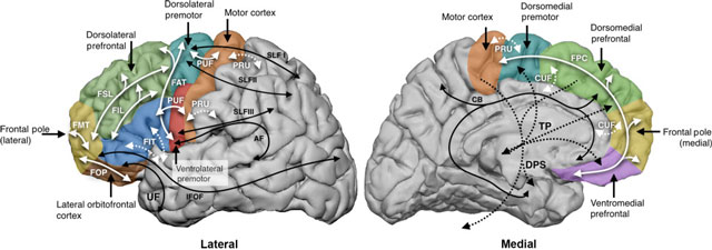 這裏只是談到額葉功能的幾個方面,整個的圖景更為複雜,圖片來源:Handbook of Clinical Neurology