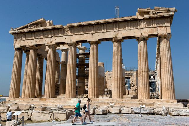 遊客參觀希臘雅典的帕特農神廟。新華社發(馬里奧斯·羅洛斯攝)