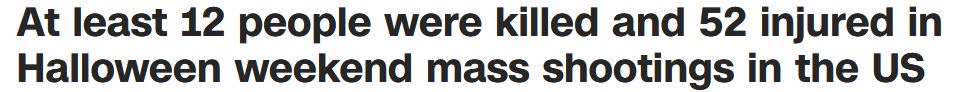 美國驚魂萬聖節:至少11起大規模槍擊,12人死亡