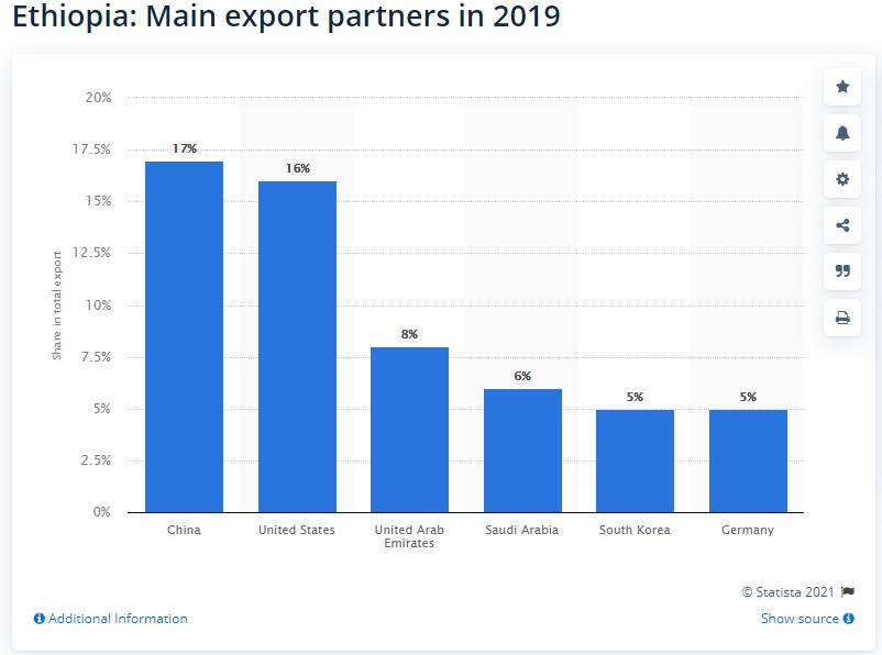 埃塞俄比亞主要出口國 圖表來源:Statista