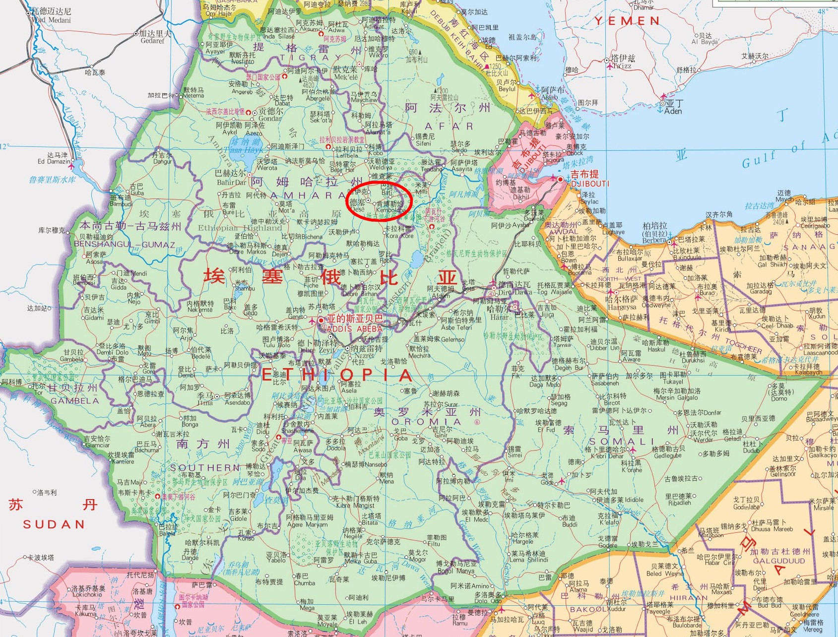 埃塞俄比亞地圖 紅圈為“提人陣”新佔領的兩大戰略城市