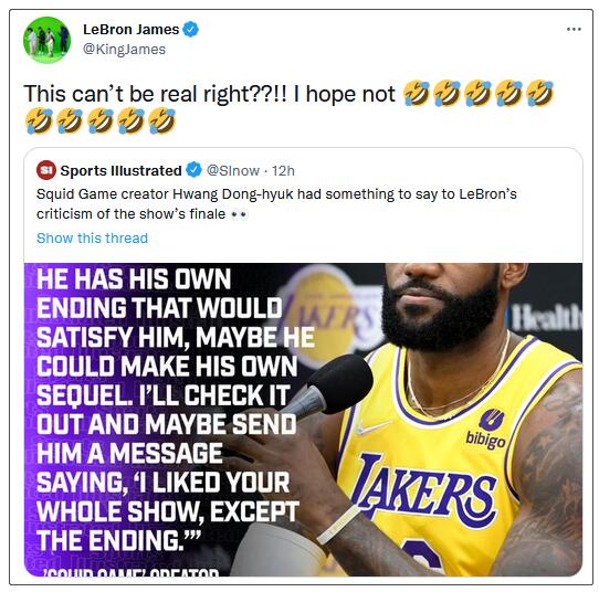 球星詹姆斯與《魷魚遊戲》的互動