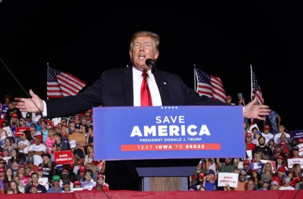 2021年10月仍然自稱“總統”的特朗普在愛荷華州參加集會