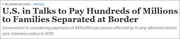 報道稱,在特朗普政府執政期間,在邊境和父母分離的兒童有大約5500人,而到目前為止,這些非法移民家庭已經提出了大約940項索賠。“美國司法部、國土安全部以及衞生部現在正在考慮向每個受到傷害的非法移民家庭支付接近100萬美元的賠款,”報道寫道,“賠償金額或達10億美元甚至更多。”