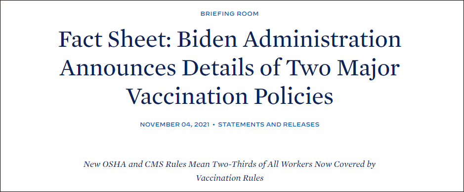根據聲明,拜登政府最新的疫苗強制接種令包含兩個部分。