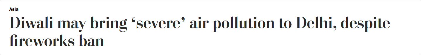 “狂歡結束了,德里正呼吸着危險且有害健康的空氣”、“排燈節後,德里的空氣質量陷入危險的境地”……當地時間5日,德里嚴重的空氣污染狀況引發了印度國內外諸多媒體的關注。甚至早在排燈節前,美國《華盛頓郵報》就已經預測到了德里空氣質量面臨“嚴重污染”的危機。