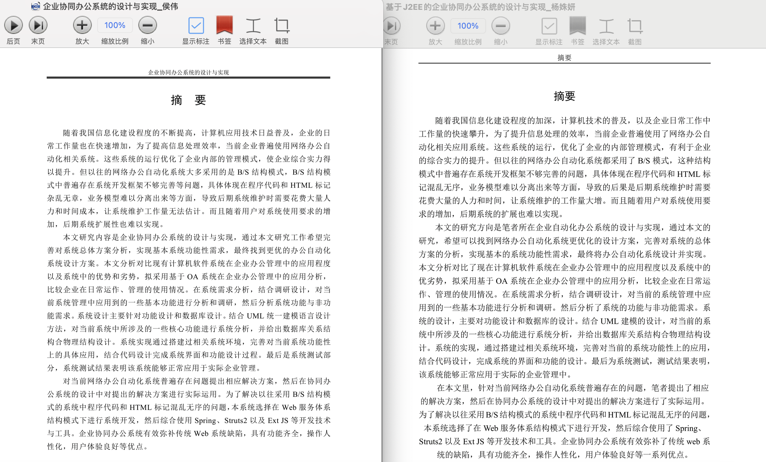 11月5日,澎湃新聞收到多位網友舉報:湖南大學信息科學與工程學院軟件工程專業2018屆畢業生侯偉的碩士學位論文《企業協同辦公系統的設計與實現》涉嫌抄襲電子科技大學光電科學與工程學院碩士畢業生楊姝妍的學位論文《基於J2EE的企業協同辦公系統的設計與實現》,兩篇論文的重複率接近100%。