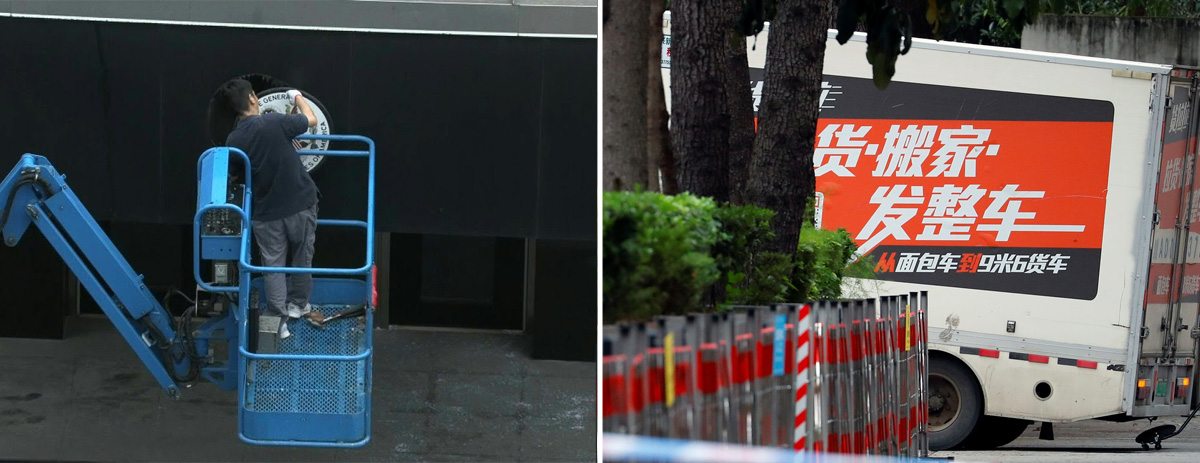 2020年7月25日,美駐成都總領館徽標被拆,搬家貨車進場